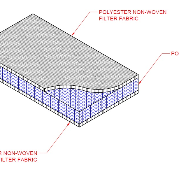 RAM Vent® is a lightweight entangled geomatrix manufactured for use in an active radon mitigation system. RAM Vent® is manufactured with a heat bonded filter fabric on one or two sides allowing air to flow freely based on our 95% open entangled design.