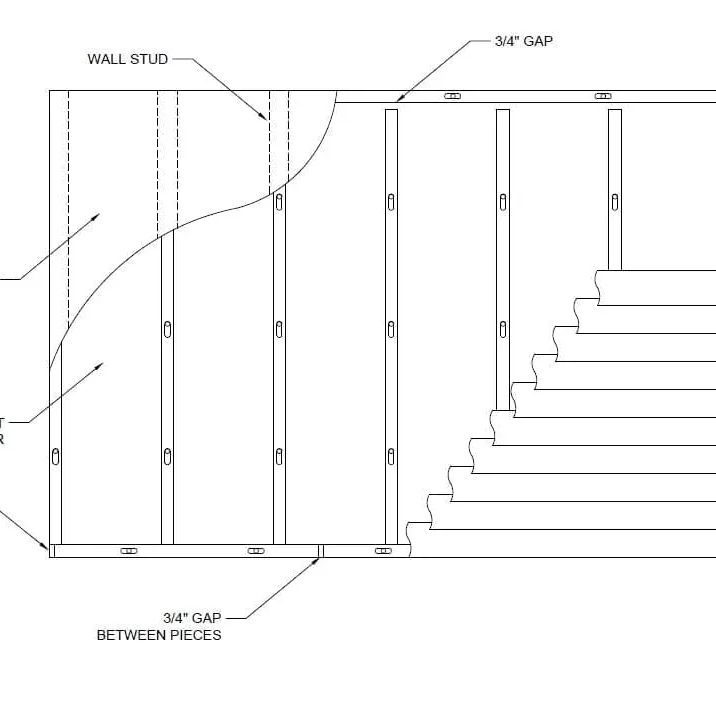 - Leave a .75″ gap between vertical and horizontal furring strips to allow for differential movement (Diagram A).