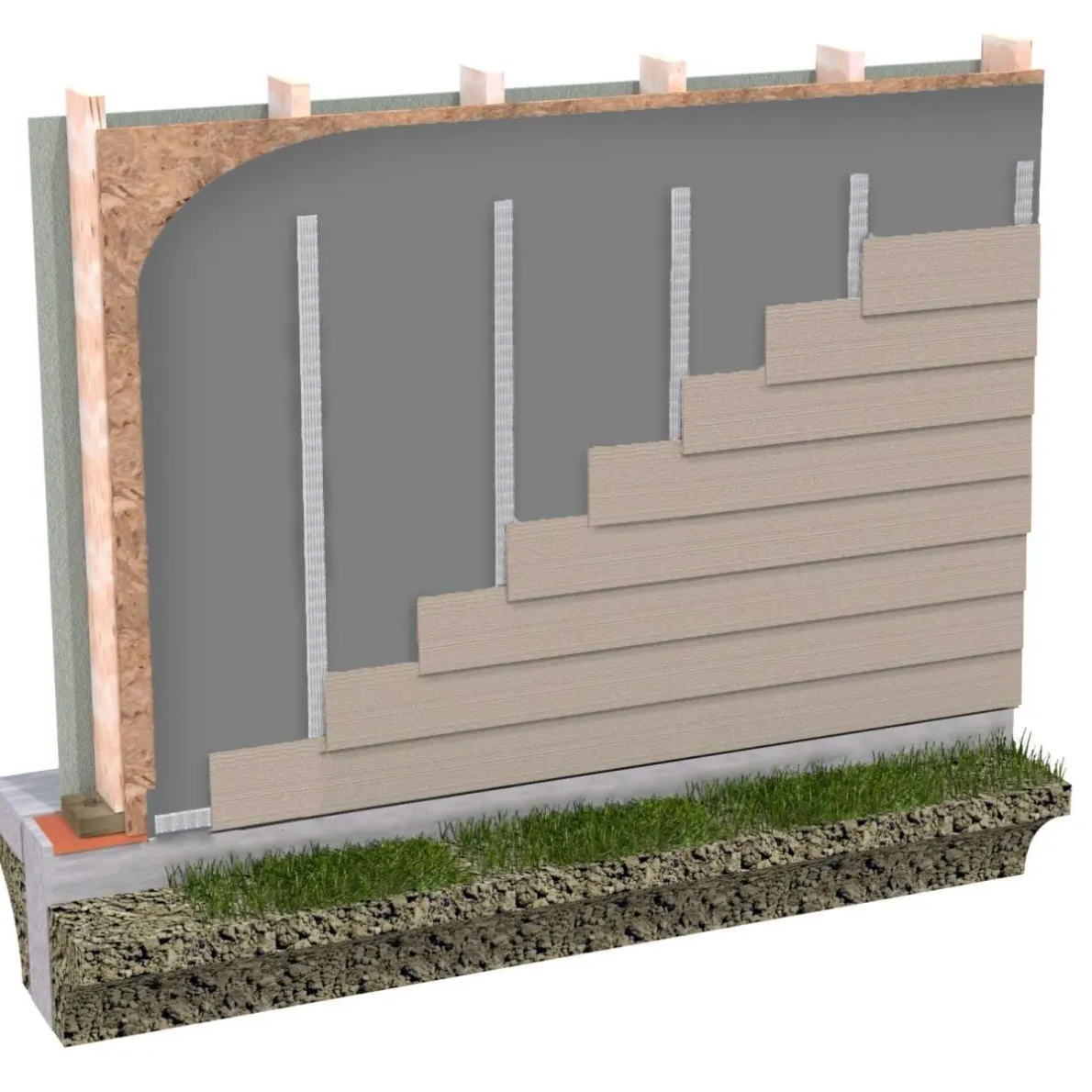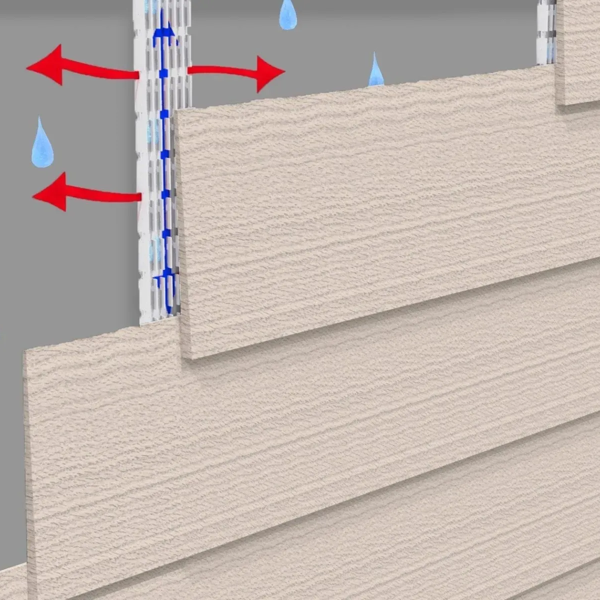 - Place the Watairvent® Furring Strips vertically every sixteen inches on center aligned with the wood studs. Be sure your fastener length accounts for the entire depth of the assembly. Follow siding manufacturers installation instructions. Can be installed horizontally as well.